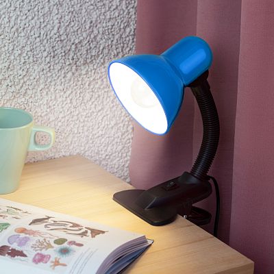 Настольный светильник ЭРА N-212-E27-40W-BU Е27 на прищепке, синий (Б0035060)