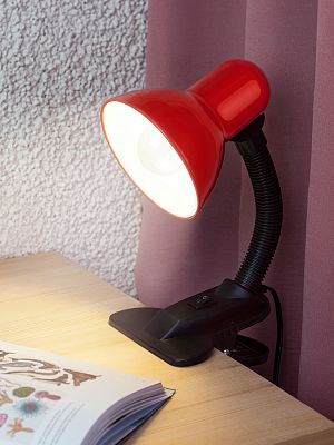 Настольный светильник ЭРА N-212-E27-40W-R Е27 на прищепке, красный (Б0035061)
