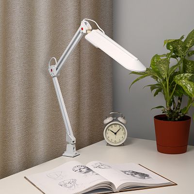 Настольный светильник ЭРА NL-201-G23-11W-W на струбцине,белый (C0041457)