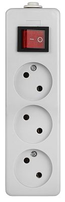 Колодка ЭРА 3 гнезда без заземления, K-3s с выключателем