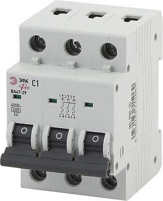 Основное назначение автоматического выключателя — это защита от возможной перегрузки и короткого замыкания. Покупка Автоматический выключатель ЭРА PRO NO-900-40 ВА47-29 3P 6А кривая C 4,5кА (Б0031772) обеспечит надежную защиту электрооборудования от поломок из-за перегрузок и скачков напряжения. Просим обращать внимание на характеристики ЭРА.