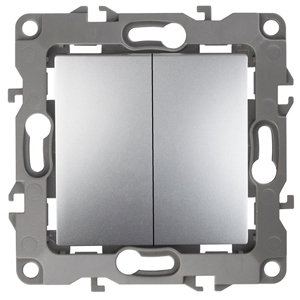 Выключатель двойной, 10АХ-250В, без м.лапок, Эра12, алюминий