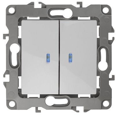 Выключатель двойной с подсветкой, 10АХ-250В, Эра12, белый