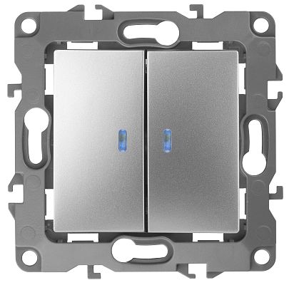 Выключатель ЭРА 12 12-1105-03 10А 250В алюминий с подсветкой двухклавишный