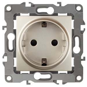 Розетка 2P+E Schuko, 16АХ-250В, без м.лапок, Эра12, шампань