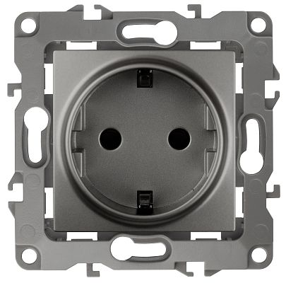 Розетка 2P+E Schuko со шторками, 16АХ-250В, Эра12, графит