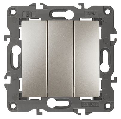 При подборе розеток, выключателей и других элементов для работы с электроэнергией учитывают не только электротехнические параметры, но и эстетику. Выключатель ЭРА Elegance 14-1107-04 10А 250В шампань трёхклавишный (Б0034253) — одна из лучших моделей в своем классе по обоим критериям. Производитель ЭРА сделал ставку на простую надежную конструкцию и современные материалы, которые обладают высокой устойчивостью к износу. Продукция прошла строгую проверку на безопасность и рассчитана на многолетнюю эксплуатацию в интенсивном режиме. Как официальный дистрибьютор мы готовы поставить любое количество товаров в кратчайшие сроки.