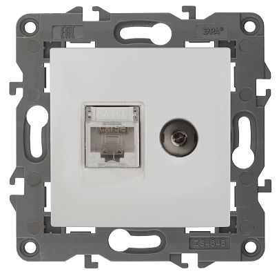 При подборе розеток, выключателей и других элементов для работы с электроэнергией учитывают не только электротехнические параметры, но и эстетику. Розетка ЭРА Elegance 14-3110-01 белый RJ45+TV (Б0034314) — одна из лучших моделей в своем классе по обоим критериям. Производитель ЭРА сделал ставку на простую надежную конструкцию и современные материалы, которые обладают высокой устойчивостью к износу. Продукция прошла строгую проверку на безопасность и рассчитана на многолетнюю эксплуатацию в интенсивном режиме. Как официальный дистрибьютор мы готовы поставить любое количество товаров в кратчайшие сроки.