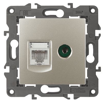 При подборе розеток, выключателей и других элементов для работы с электроэнергией учитывают не только электротехнические параметры, но и эстетику. Розетка ЭРА Elegance 14-3110-04 шампань RJ45+TV (Б0034317) — одна из лучших моделей в своем классе по обоим критериям. Производитель ЭРА сделал ставку на простую надежную конструкцию и современные материалы, которые обладают высокой устойчивостью к износу. Продукция прошла строгую проверку на безопасность и рассчитана на многолетнюю эксплуатацию в интенсивном режиме. Как официальный дистрибьютор мы готовы поставить любое количество товаров в кратчайшие сроки.