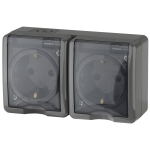 Розетка ЭРА Эксперт 11-2404-03 накладная IP54 16А 250В серый двойная с заземлением со шторками (Б0020719)