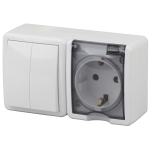 Блок розетка+выключатель двойной IP54, 16АХ(10AX)-250В, ОУ, Эра Эксперт, белый