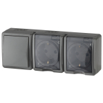 Блок две розетки+выключатель IP54, 16АХ(10AX)-250В, ОУ, Эра Эксперт, серый