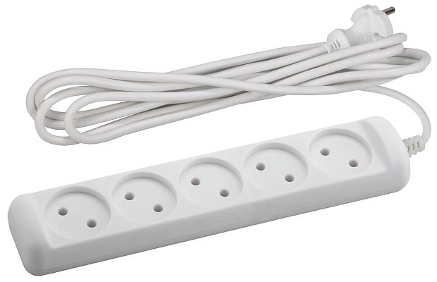 Удлинитель электрический ЭРА без заземления 5 розеток 3м ПВС 2x1 10А, Белый, U-5-3m-2x1