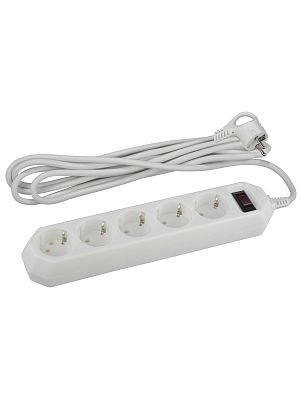 Сетевой фильтр ЭРА с базовой защитой, заземлением и выключателем 5 розеток 5м 10А, Белый, USF-5es-5m
