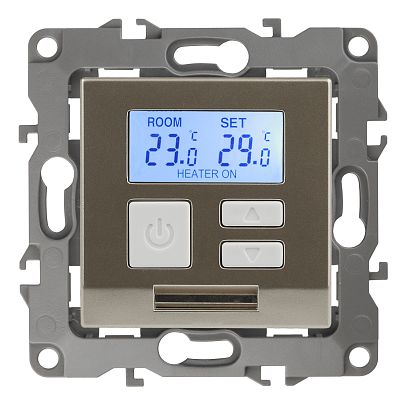 При подборе розеток, выключателей и других элементов для работы с электроэнергией учитывают не только электротехнические параметры, но и эстетику. Терморегулятор для теплого пола _ отопления ЭРА 12 12-4111-04 шампань электронный (Б0031274) — одна из лучших моделей в своем классе по обоим критериям. Производитель ЭРА сделал ставку на простую надежную конструкцию и современные материалы, которые обладают высокой устойчивостью к износу. Продукция прошла строгую проверку на безопасность и рассчитана на многолетнюю эксплуатацию в интенсивном режиме. Как официальный дистрибьютор мы готовы поставить любое количество товаров в кратчайшие сроки.