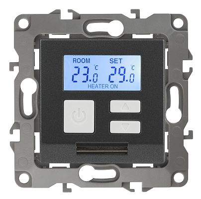 При подборе розеток, выключателей и других элементов для работы с электроэнергией учитывают не только электротехнические параметры, но и эстетику. Терморегулятор для теплого пола _ отопления ЭРА 12 12-4111-12 электронный СУ 16А 230В графит (Б0031277) — одна из лучших моделей в своем классе по обоим критериям. Производитель ЭРА сделал ставку на простую надежную конструкцию и современные материалы, которые обладают высокой устойчивостью к износу. Продукция прошла строгую проверку на безопасность и рассчитана на многолетнюю эксплуатацию в интенсивном режиме. Как официальный дистрибьютор мы готовы поставить любое количество товаров в кратчайшие сроки.