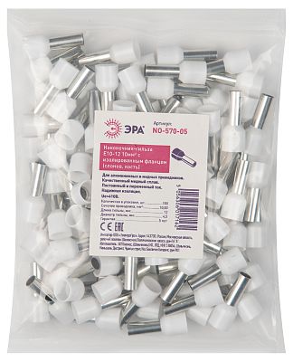 Электротехническая инфраструктура на объекте может иметь разную конфигурацию, в том числе довольно сложную со множеством подключенных потребителей, однако строгие требования к безопасности неизменны. Они прописаны в отраслевых стандартах и другой нормативной документации. И зависит итоговый результат непосредственно от качества электромонтажа и используемых комплектующих. Наконечник-гильза ЭРА NO-570-05 Е10-12 10мм2 с изолированным фланцем упаковка 100 шт (Б0041451) — небольшая, но очень важная деталь, которая тоже отвечает за корректную работу оборудования. Устанавливается довольно просто, но с эксплуатационными нагрузками при этом справляется на отлично. Качество гарантировано многоступенчатым контролем на заводе ЭРА. При заказе уточните артикул Б0041451 и количество позиций.