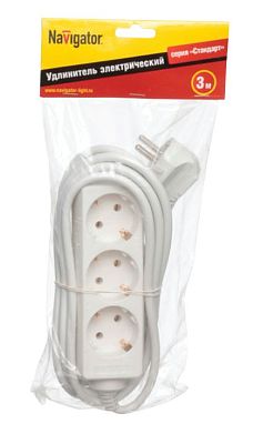 При подборе розеток, выключателей и других элементов для работы с электроэнергией учитывают не только электротехнические параметры, но и эстетику. Удлинитель бытовой Navigator NPE-S-03-300-E-3x1 с заземлением 3 гнезда 3м (94179) — одна из лучших моделей в своем классе по обоим критериям. Производитель Navigator сделал ставку на простую надежную конструкцию и современные материалы, которые обладают высокой устойчивостью к износу. Продукция прошла строгую проверку на безопасность и рассчитана на многолетнюю эксплуатацию в интенсивном режиме. Как официальный дистрибьютор мы готовы поставить любое количество товаров в кратчайшие сроки.