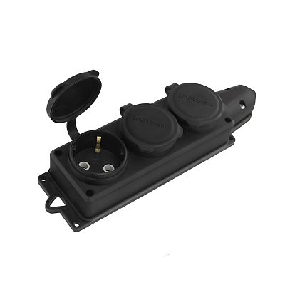 При подборе розеток, выключателей и других элементов для работы с электроэнергией учитывают не только электротехнические параметры, но и эстетику. Колодка трехместная однофазная с заглушками Компакт с заземлением каучук 16А 250В IP44 UNIVERSAL (1323) — одна из лучших моделей в своем классе по обоим критериям. Производитель Universal сделал ставку на простую надежную конструкцию и современные материалы, которые обладают высокой устойчивостью к износу. Продукция прошла строгую проверку на безопасность и рассчитана на многолетнюю эксплуатацию в интенсивном режиме. Как официальный дистрибьютор мы готовы поставить любое количество товаров в кратчайшие сроки.