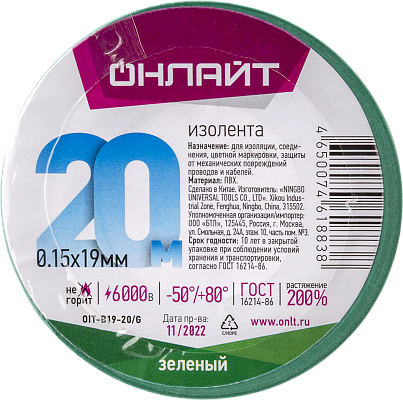 Электротехническая инфраструктура на объекте может иметь разную конфигурацию, в том числе довольно сложную со множеством подключенных потребителей, однако строгие требования к безопасности неизменны. Они прописаны в отраслевых стандартах и другой нормативной документации. И зависит итоговый результат непосредственно от качества электромонтажа и используемых комплектующих. Изолента ОНЛАЙТ 61 883 OIT-B19-20/G ПВХ зеленая (Китай) (61883) — небольшая, но очень важная деталь, которая тоже отвечает за корректную работу оборудования. Устанавливается довольно просто, но с эксплуатационными нагрузками при этом справляется на отлично. Качество гарантировано многоступенчатым контролем на заводе Онлайт. При заказе уточните артикул 61883 и количество позиций.