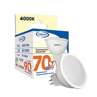 К светотехнике на любом объекте, будь то жилое помещение или коммерческая площадка, предъявляют высокие требования. Необходимо не только продумать конфигурацию всех приборов, безопасную схему подключения, суммарную мощность и нагрузку на сеть, но и учесть требования дизайна, поскольку эстетике сегодня уделяется большое внимание. Лампа светодиодная IONICH акцентного освещения ILED-SMD2835-JCDR-7Вт-630Лм-230В-4000К-GU5.3 (1525) — современное решение, в котором учтены все требования. За надежность отвечают материалы с большим запасом прочности. Все элементы конструкции без проблем выдерживают интенсивную эксплуатацию. Такой вдумчивый подход к деталям является визитной карточкой бренда IONICH.