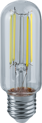 К светотехнике на любом объекте, будь то жилое помещение или коммерческая площадка, предъявляют высокие требования. Необходимо не только продумать конфигурацию всех приборов, безопасную схему подключения, суммарную мощность и нагрузку на сеть, но и учесть требования дизайна, поскольку эстетике сегодня уделяется большое внимание. Лампа светодиодная филаментная Navigator NLL-F-T39-7-230-2.7K-E27-CL (110 mm) (14441) — современное решение, в котором учтены все требования. За надежность отвечают материалы с большим запасом прочности. Все элементы конструкции без проблем выдерживают интенсивную эксплуатацию. Такой вдумчивый подход к деталям является визитной карточкой бренда Navigator.