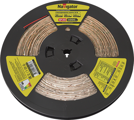 К светотехнике на любом объекте, будь то жилое помещение или коммерческая площадка, предъявляют высокие требования. Необходимо не только продумать конфигурацию всех приборов, безопасную схему подключения, суммарную мощность и нагрузку на сеть, но и учесть требования дизайна, поскольку эстетике сегодня уделяется большое внимание. Лента светодиодная Navigator NLS-3528WW60-4.8-IP20-12V-R50 4.8Вт/м уп. 50м (71246) — современное решение, в котором учтены все требования. За надежность отвечают материалы с большим запасом прочности. Все элементы конструкции без проблем выдерживают интенсивную эксплуатацию. Такой вдумчивый подход к деталям является визитной карточкой бренда Navigator.