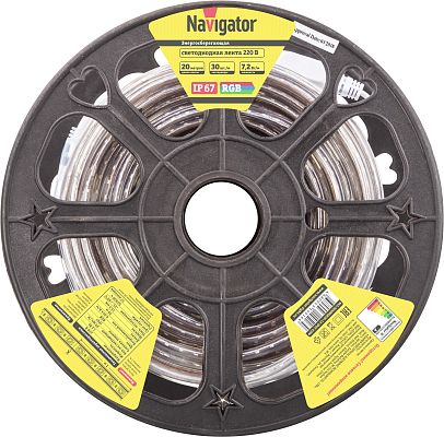 К светотехнике на любом объекте, будь то жилое помещение или коммерческая площадка, предъявляют высокие требования. Необходимо не только продумать конфигурацию всех приборов, безопасную схему подключения, суммарную мощность и нагрузку на сеть, но и учесть требования дизайна, поскольку эстетике сегодня уделяется большое внимание. Лента светодиодная Navigator NLS-5050RGB30-7.2-IP67-220V уп. 20м (14516) — современное решение, в котором учтены все требования. За надежность отвечают материалы с большим запасом прочности. Все элементы конструкции без проблем выдерживают интенсивную эксплуатацию. Такой вдумчивый подход к деталям является визитной карточкой бренда Navigator.