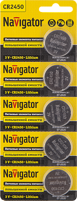 Безопасность, простота использования, долгий срок службы — три базовых требования к элементам питания и зарядным устройствам. Элемент питания литиевый NBT-CR2450-BP5 (блистер 5шт) Navigator (94766) по этим параметрам в топе. Отличается высоким эксплуатационным ресурсом и стабильной работой под нагрузкой. Надежность продукции Navigator подтверждена в ходе многочисленных испытаний и уже неоднократно доказана на практике профессионалами и рядовыми покупателями. Вы можете сделать заказ на любое количество артикула 94766. На нашем складе всегда большой запас, поскольку мы работаем с производителем на правах официального дистрибьютора.