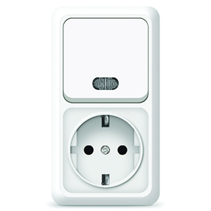 При подборе розеток, выключателей и других элементов для работы с электроэнергией учитывают не только электротехнические параметры, но и эстетику. Блок Олимп, открытой установки, выключатель одноклавишный с подсветкой 10А + розетка с заземлением 16A, 220В, вертикальный белый UNIVERSAL (О0039) — одна из лучших моделей в своем классе по обоим критериям. Производитель Universal сделал ставку на простую надежную конструкцию и современные материалы, которые обладают высокой устойчивостью к износу. Продукция прошла строгую проверку на безопасность и рассчитана на многолетнюю эксплуатацию в интенсивном режиме. Как официальный дистрибьютор мы готовы поставить любое количество товаров в кратчайшие сроки.