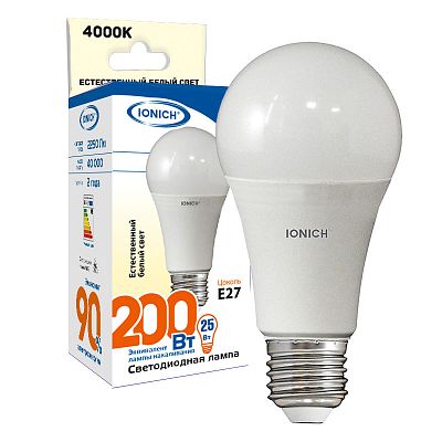 К светотехнике на любом объекте, будь то жилое помещение или коммерческая площадка, предъявляют высокие требования. Необходимо не только продумать конфигурацию всех приборов, безопасную схему подключения, суммарную мощность и нагрузку на сеть, но и учесть требования дизайна, поскольку эстетике сегодня уделяется большое внимание. Лампа светодиодная IONICH общего назначения ILED-SMD2835-A65-25Вт-2250Лм-230В-4000К-E27 (1557) — современное решение, в котором учтены все требования. За надежность отвечают материалы с большим запасом прочности. Все элементы конструкции без проблем выдерживают интенсивную эксплуатацию. Такой вдумчивый подход к деталям является визитной карточкой бренда IONICH.