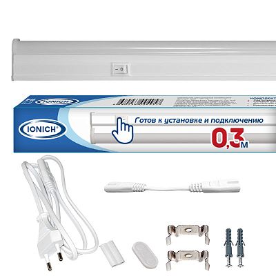К светотехнике на любом объекте, будь то жилое помещение или коммерческая площадка, предъявляют высокие требования. Необходимо не только продумать конфигурацию всех приборов, безопасную схему подключения, суммарную мощность и нагрузку на сеть, но и учесть требования дизайна, поскольку эстетике сегодня уделяется большое внимание. Светильник светодиодный линейный Т5 IONICH ILED-COCB-СПБТ5-300мм-5Вт-450Лм-230В-4000К-IP40 (1565) — современное решение, в котором учтены все требования. За надежность отвечают материалы с большим запасом прочности. Все элементы конструкции без проблем выдерживают интенсивную эксплуатацию. Такой вдумчивый подход к деталям является визитной карточкой бренда IONICH.