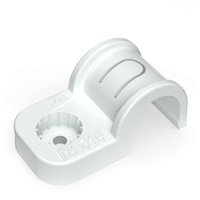 Крепеж-скоба пластиковая односторонняя для прямого монтажа белая в п/э д16 (50шт/750шт уп/кор) Промрукав