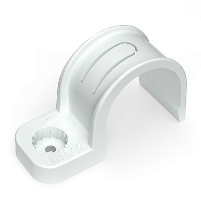 Крепеж-скоба пластиковая односторонняя для прямого монтажа белая в п/э д32 (25шт/375шт уп/кор) Промрукав (PR13.0379)