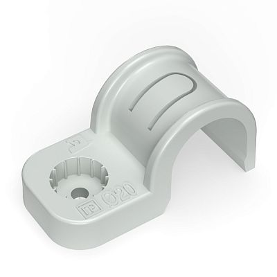 Крепеж-скоба пластик. односторонняя для прямого монтажа серая в п/э д20 (50шт/600шт уп/кор) Промрукав (PR13.0369)