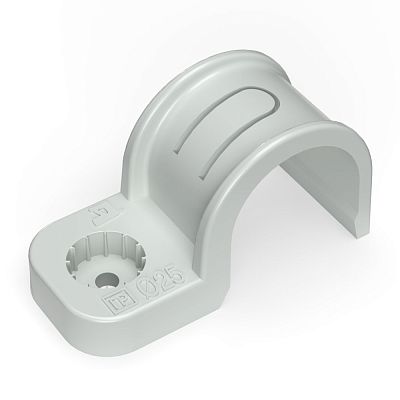Крепеж-скоба пластик. односторонняя для прямого монтажа серая в п/э д25 (50шт/450шт уп/кор) Промрукав