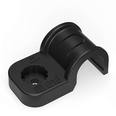 Крепеж-скоба пластик. односторонняя для прямого монтажа черная в п/э д16 (50шт/750шт уп/кор) Промрукав (PR13.0372)
