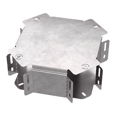 Ответвитель X-образный предназначен для разветвления кабельных трасс в горизонтальном направлении, для перфорированных и глухих лотков. В комплект входит крышка.