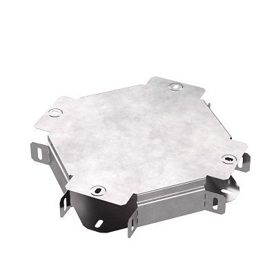 Ответвитель X-образный предназначен для разветвления кабельных трасс в горизонтальном направлении, для перфорированных и глухих лотков. В комплект входит крышка.