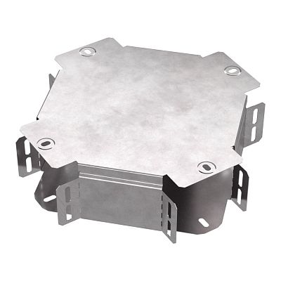 Ответвитель X-образный предназначен для разветвления кабельных трасс в горизонтальном направлении, для перфорированных и глухих лотков. В комплект входит крышка.