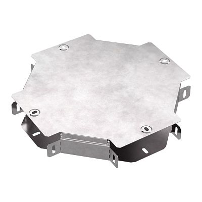 Ответвитель X-образный предназначен для разветвления кабельных трасс в горизонтальном направлении, для перфорированных и глухих лотков. В комплект входит крышка.