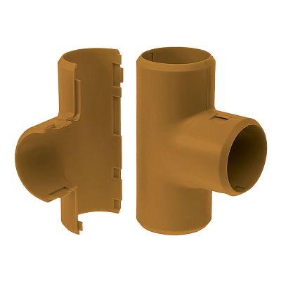 Предназначен для соединения гофрированных труб или гладких труб из пластика, образуя Т-образное ответвление, что позволяет придать более эстетичный внешний вид местам соединения. Состоит из двух частей соединяющихся друг с другом. Благодаря разъёмному корпусу, имеет возможность установки на уже смонтированную трассу.