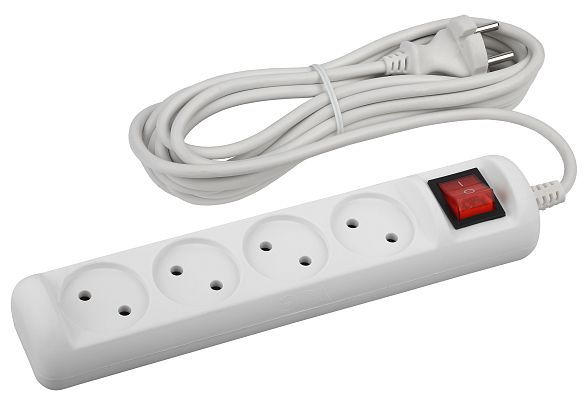 Удлинитель электрический ЭРА без заземления с выключателем 4 розетки 3м ПВС 2x1 10А, Белый, U-4s-3m-
