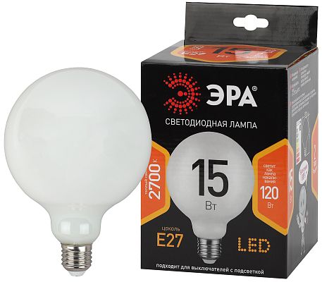 Лампа светодиодная ЭРА F-LED G125-15w-827-E27 OPAL филамент шар матовый теплый белый свет (Б0047038)