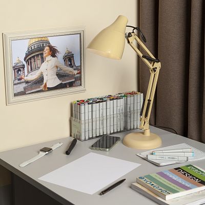 <p>Настольный светильник ЭРА N-123-Е27-40W-BG трендового дизайна с классической конструкцией может использоваться с разными источниками света - лампой накаливания, компактной люминесцентной лампой (КЛЛ) или светодиодной (LED) лампой. Выключатель на проводе. Устойчивое основание. Высота плафона регулируется двухсекционной сгибающейся стойкой, направление света - поворотом и наклоном плафона в любом направлении.</p>