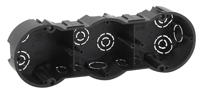 Коробка монтажная IP20 ЭРА 212х70х45мм, 3-х местная, для твердых стен, саморезы (чёрный) (Б0047214)