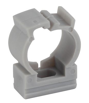 Используется для крепления гофрированных и гладких труб к поверхности стен или потолка. Для крепления к поверхности в крепёж-клипсе предусмотрено технологическое отверстие под саморез или дюбель.