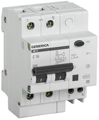 Автоматический выключатели дифференциального тока АВДТ 1Р+N 16А 30мА тип AC х-ка С ДИФ-102 нов. 4,5кА DEKraft