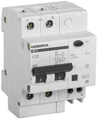 Автоматический выключатели дифференциального тока АВДТ 1Р+N 20А 30мА тип AC х-ка C ДИФ-103 4.5кА DEKraft Автоматический выключатели дифференциального тока АВДТ 1Р+N 20А 30мА тип AC х-ка C ДИФ-103 4.5кА DEKraft