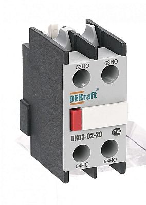 Приставка контактная серии ПК-03-02 для контакторов КМ-103 DEKraft; кол-во контактов - 2НО; ном.ток – 10 А; ном.напряжение – до 690 В; установка – с лицевой стороны; степень защиты – IP20. Приставки контактные предназначены для увеличения количества вспомогательных контактов контактора. Контактные приставки механически соединяются с контакторами и фиксируются при помощи защелки. Приставка подходит для использования с контакторами других производителей.